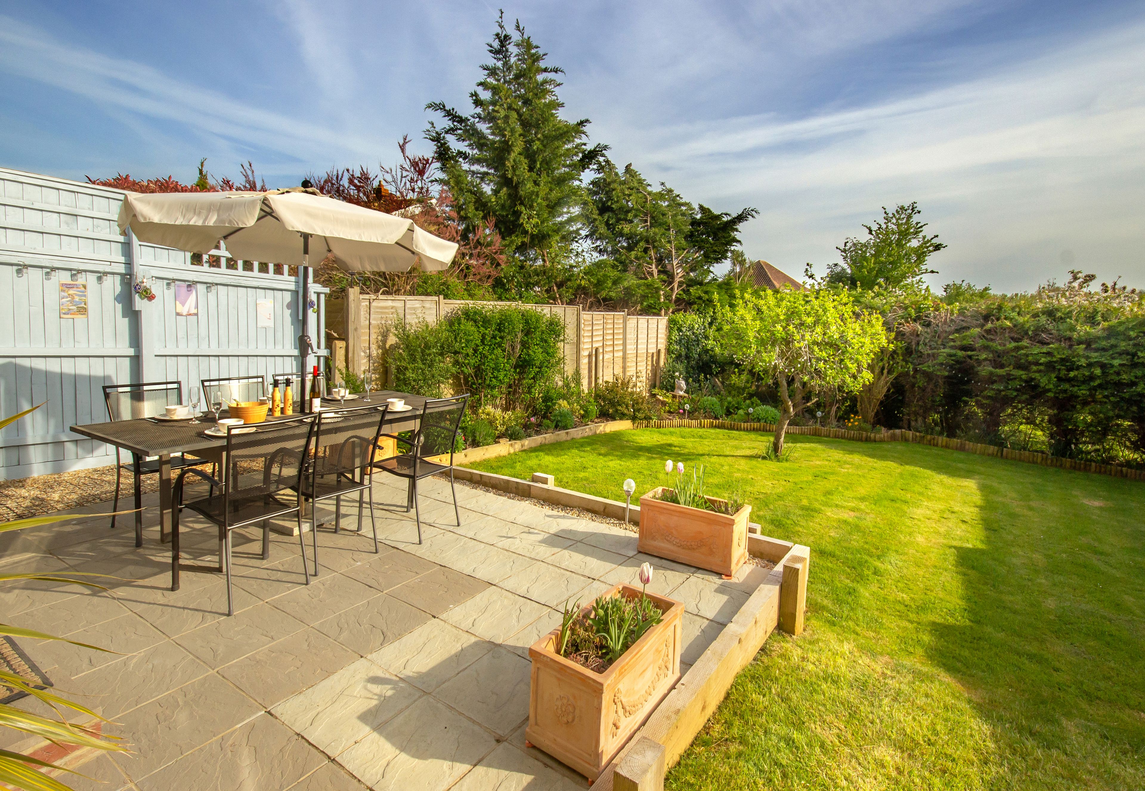 At the heart of the house is a large open-plan living, dining and kitchen area designed for spending time together. The comfortable lounge offers plenty of seating along with a large Smart TV and DVD player, while the fully folding doors open out onto a sunny, south-facing and secure garden. Outside, you can enjoy al fresco meals on the patio, fire up the BBQ, or relax while children play on the lawn surrounded by colourful flower borders.