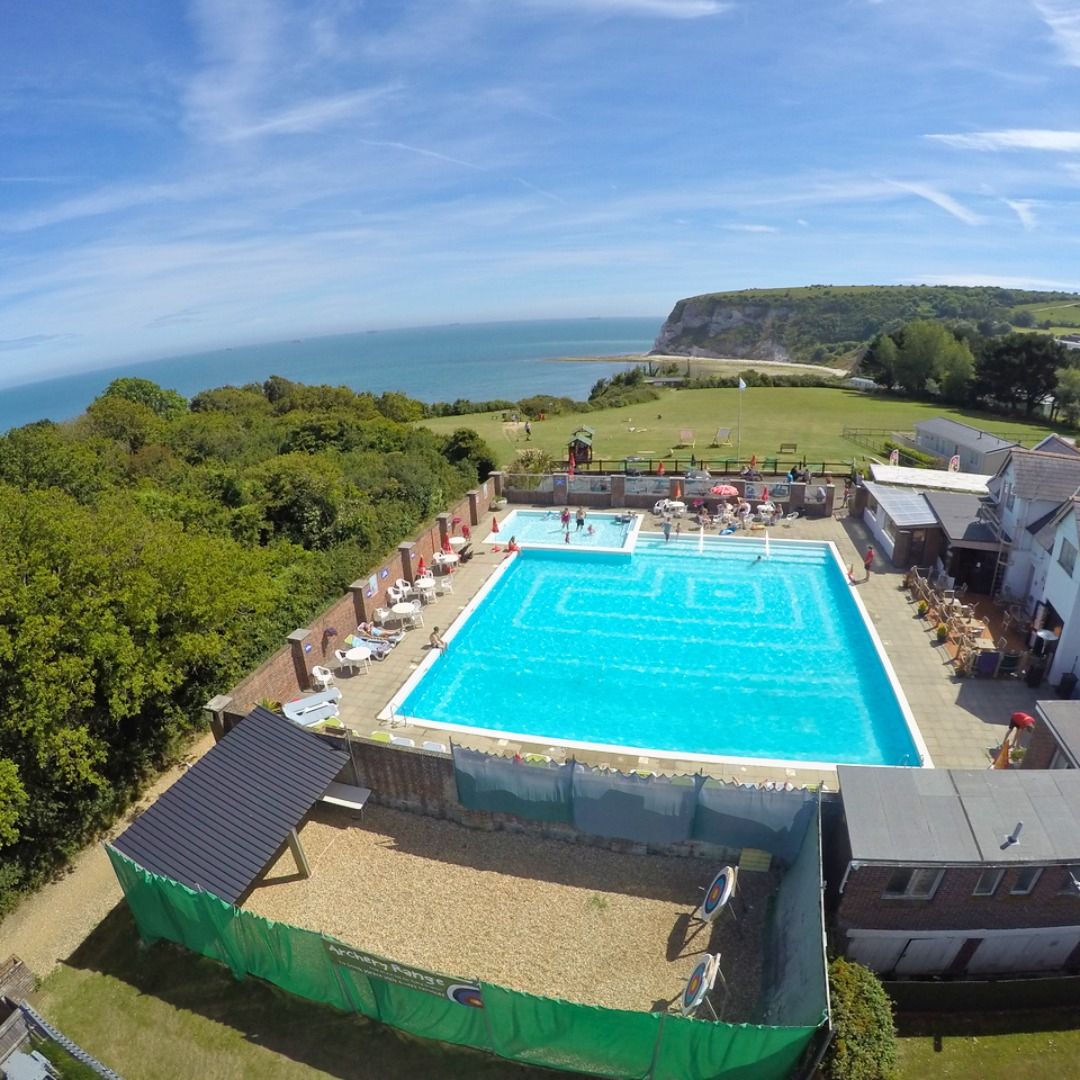 The bay itself is framed by high white chalk cliffs, particularly around Culver Cliff, which rise dramatically above the shoreline and help shelter the beach from strong winds. This gives the area a more secluded and scenic feel, with open coastal views and a sense of being away from the main tourist centres.